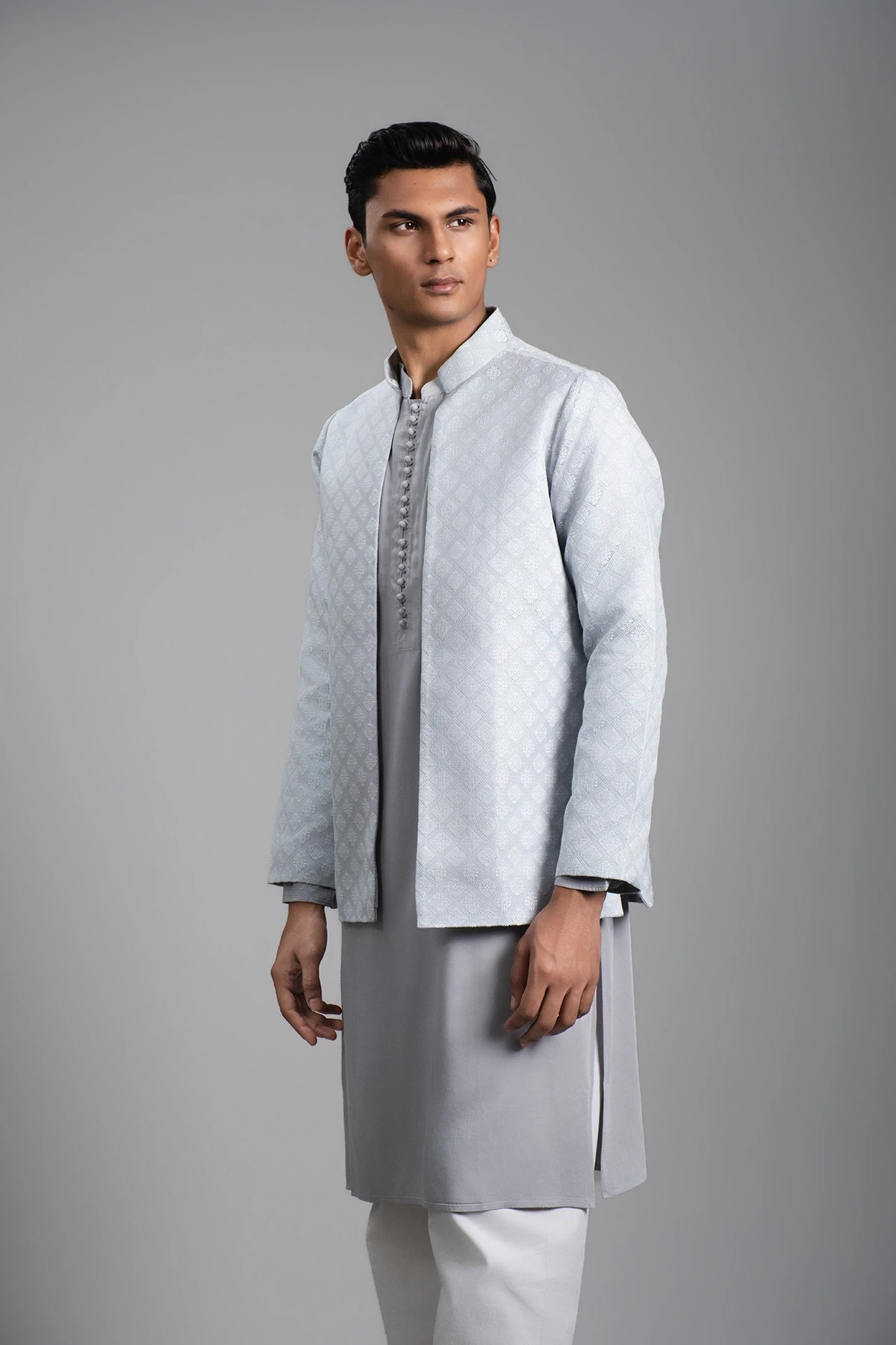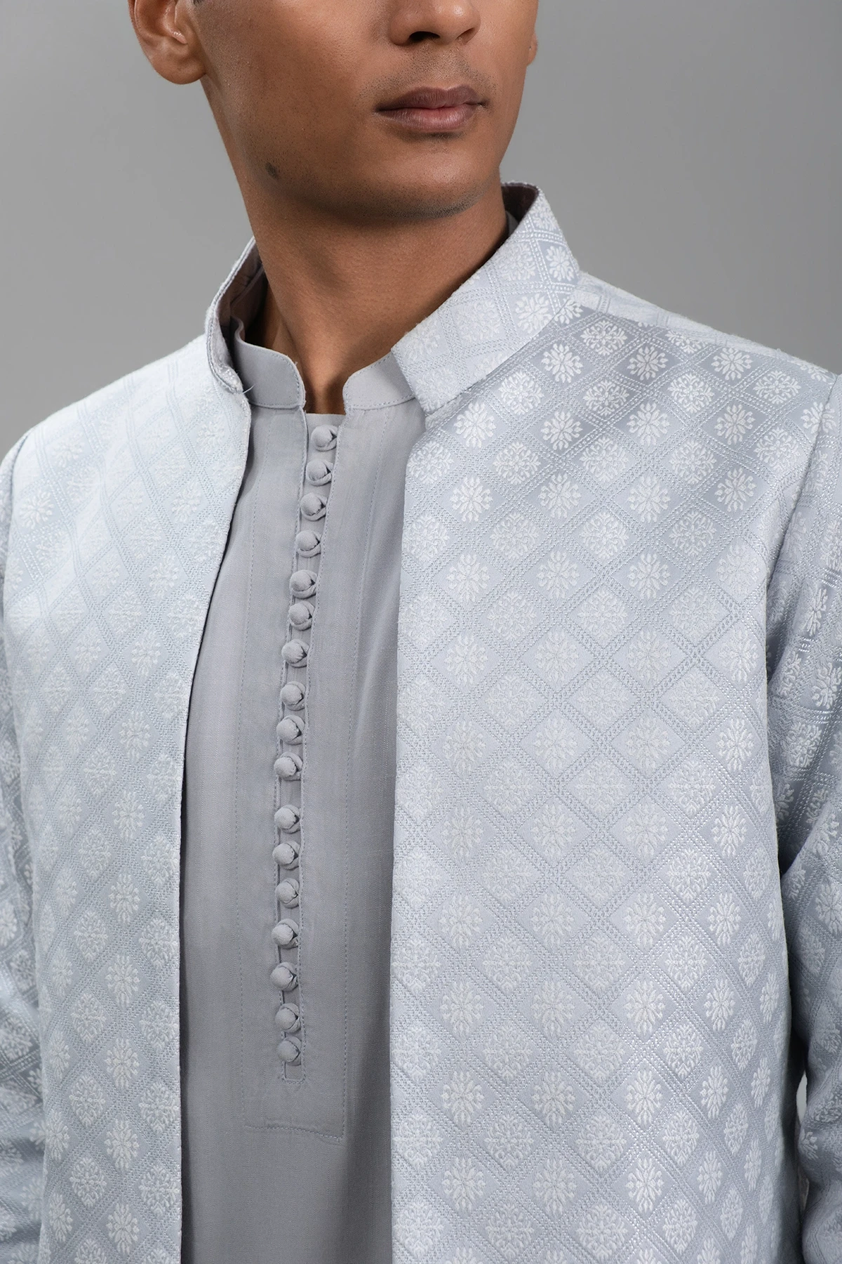 Step into festive elegance with this Powder Blue Men’s Panjabi with Coaty Set, designed to make every celebration special. The soft powder blue hue brings a refreshing and sophisticated look, while the matching coaty set adds a modern touch to traditional style. Crafted for comfort and a refined fit, this ensemble pairs perfectly with churidar or pajama, giving you a complete polished outfit for festivals and special occasions.