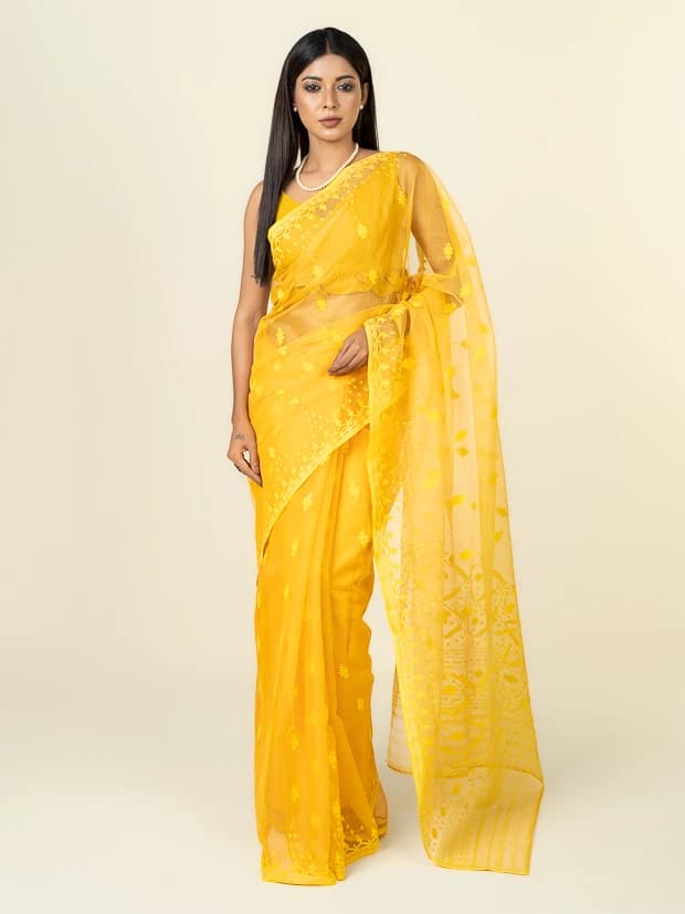 Celebrate tradition in style with this gorgeous Jamdani saree, featuring beautiful and intricate all-over work. Perfect for any celebration or special occasion, this saree combines timeless elegance with a graceful and sophisticated look. Lightweight and comfortable, it’s an ideal choice for festive gatherings and memorable moments.