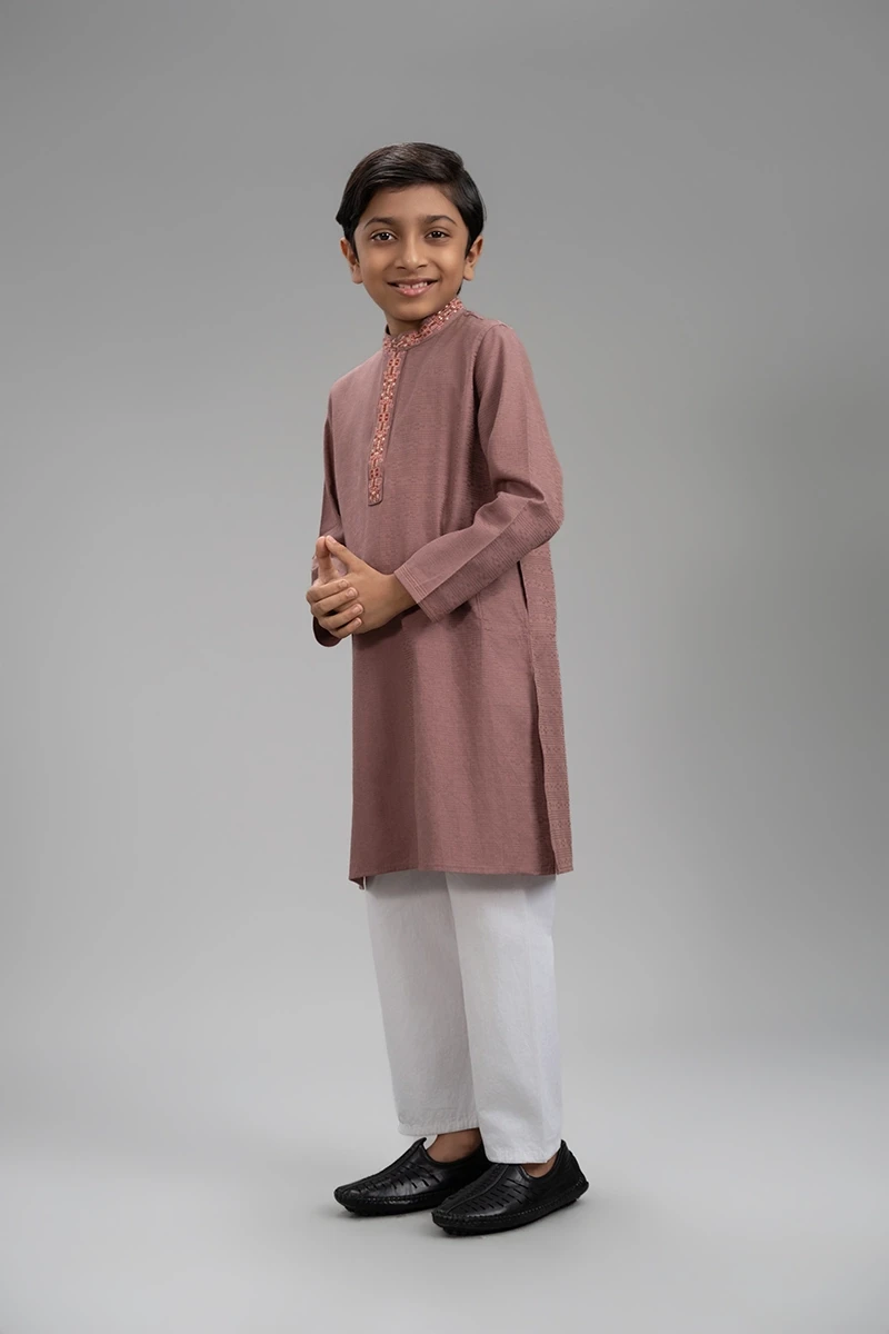 Elevate your child’s festive style with this Brownie Bite Green Hand Work Kids Boys Panjabi, crafted from premium Endi Cotton for superior comfort and breathability. Designed for a refined, premium look, it features intricate hand work detailing on the button placket and collar placket, adding a touch of elegance to traditional wear. Perfect for celebrations, cultural events, and special occasions, this Panjabi ensures your little one stands out with charm and sophistication. Soft fabric keeps him comfortable all day long.