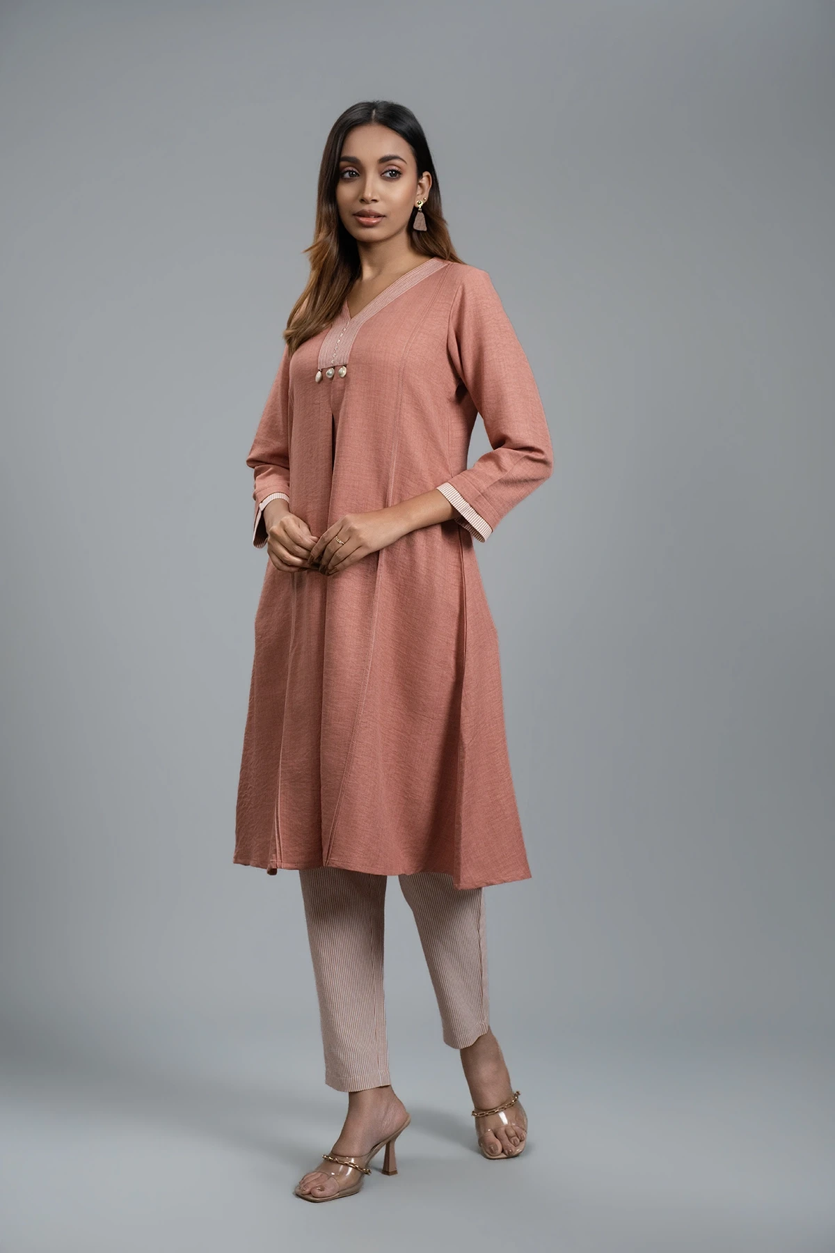 Elevate your everyday style with this elegant peach color kamij paired with a soft light-shade bottom. Designed with comfort and sophistication in mind, the breathable fabric feels gentle against the skin while offering a graceful silhouette. The soothing peach tone adds a fresh, feminine charm, making it perfect for casual outings, small gatherings, or daytime events. Its minimal yet refined look ensures effortless styling, giving you a polished appearance with all-day comfort and confidence.
