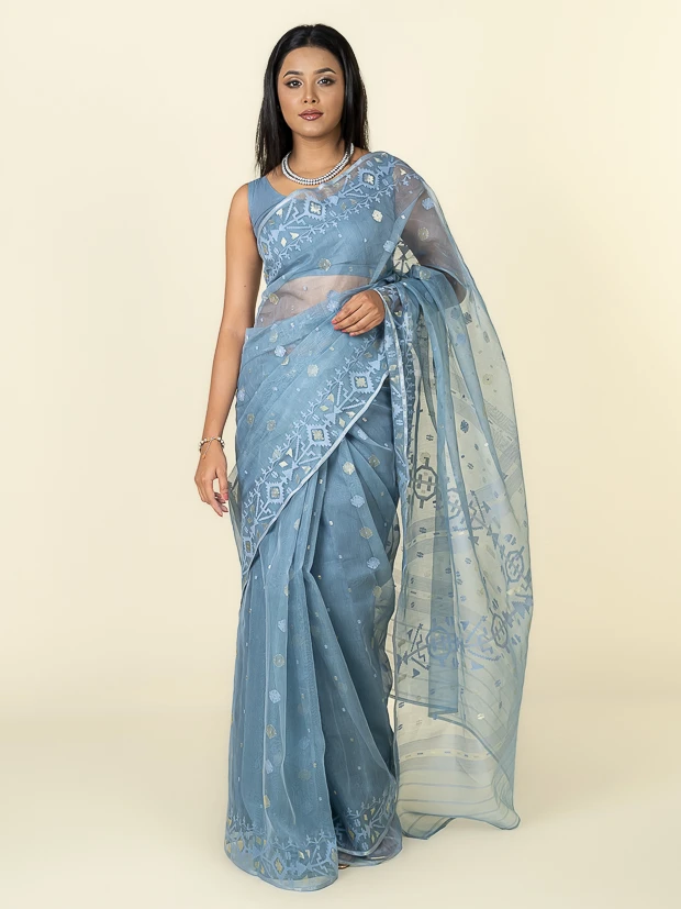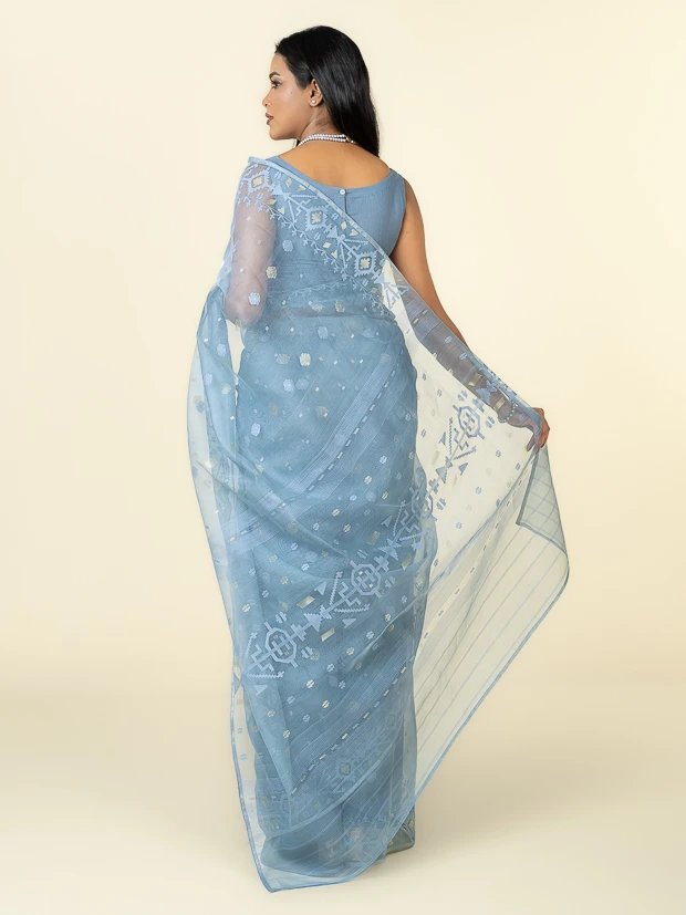 Jamdani Saree- Blue Ash