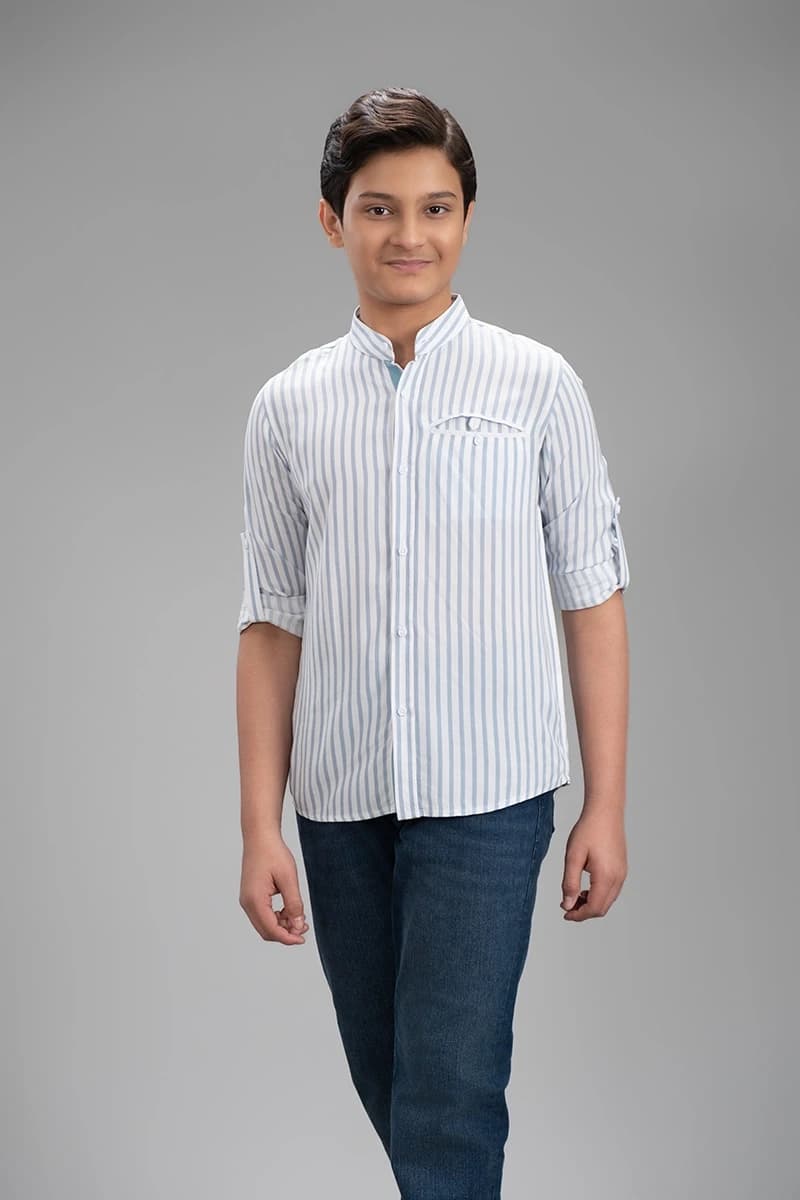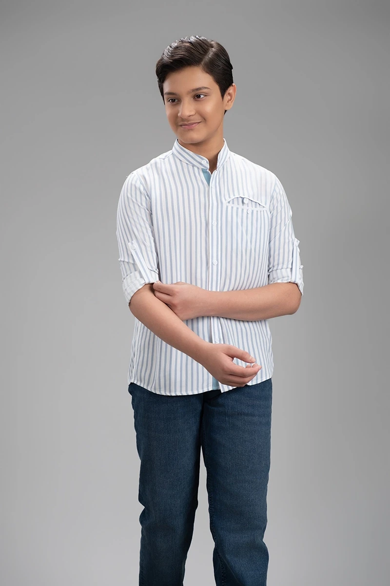 This White with Sky Blue Stripe Shirt for Teen Boys combines classic style with festive charm. The crisp white base accented with subtle sky blue stripes creates a fresh and stylish look, while a comfortable tailored fit ensures ease of movement. Perfect for any festival or casual celebration, this shirt offers youthful sophistication and effortless style.