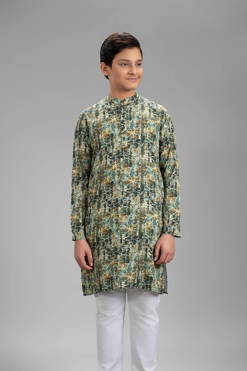 Teen Boys Panjabi - Green Printed